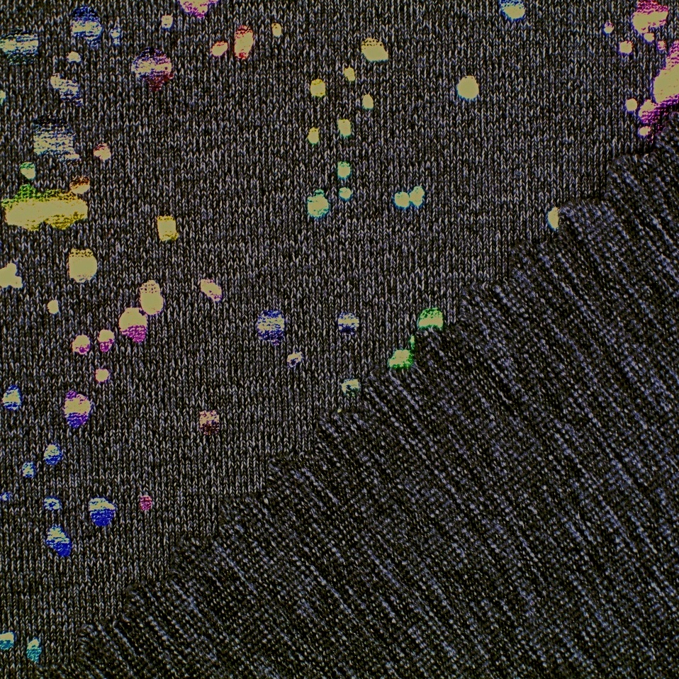 ▸ 質感麻花底布 (Melange Jersey): 底布採用帶有混色/麻花效果的單面針織布,低調的底色與高調的金屬燙箔形成完美的商業視覺平衡。
