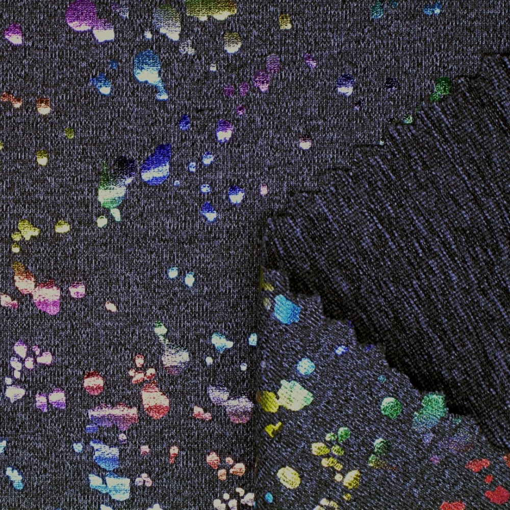 ▸ 吸睛燙金工藝 (Foil Print): 表面點綴絢麗的彩虹金屬光澤燙印,隨光線折射展現動態視覺效果。為品牌端解決「運動服飾缺乏時裝華麗感」的痛點,創造極高辨識度。